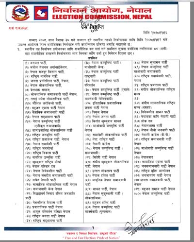 आगामी स्थानिय निर्वाचनका लागि ८० राजनीतिक दलले भाग लिने भएका छन्। उक्त कुराको जानकारी निर्वाचन आयोगले आज प्रेस बिज्ञप्ति जारी गरी सार्बजनिक गरेको हो।